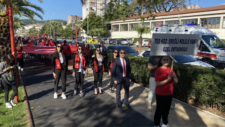 Türkiye Cumhuriyeti’nin kuruluşunun 100. yılı kutlamaları kapsamında Karadeniz Ereğli’de Atatürk Anıtı’na çelenk sunumu yapıldı, ardından geniş katılımla Cumhuriyet Yürüyüşü gerçekleştirildi.