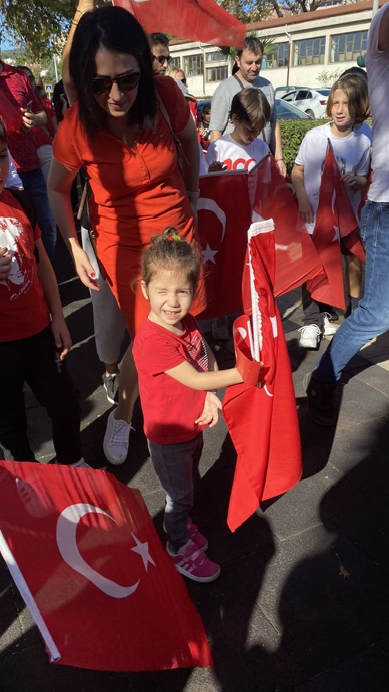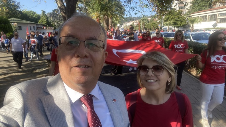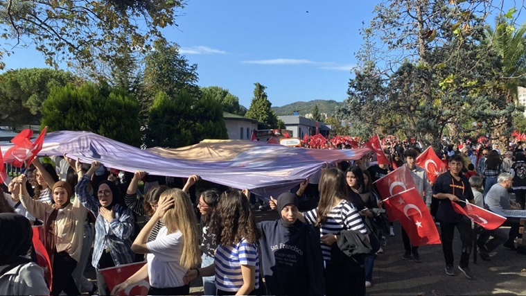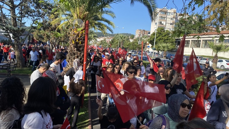 Cumhuriyet Yürüyüşü ile devam eden programda; protokol, okullar, dernekler ve halkın katılımı ile sahil boyunca bayraklar ve marşlar eşliğinde bando ile yürüyüş yapıldı. Cumhuriyet Yürüyüşüne her yaştan ve demografik yapıdan çok yüksek ve coşkulu katılımın olduğu gözlendi.