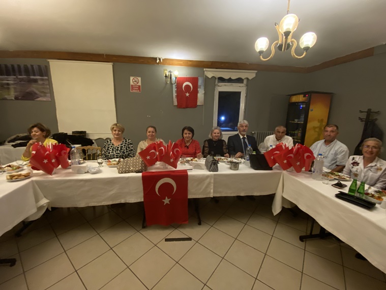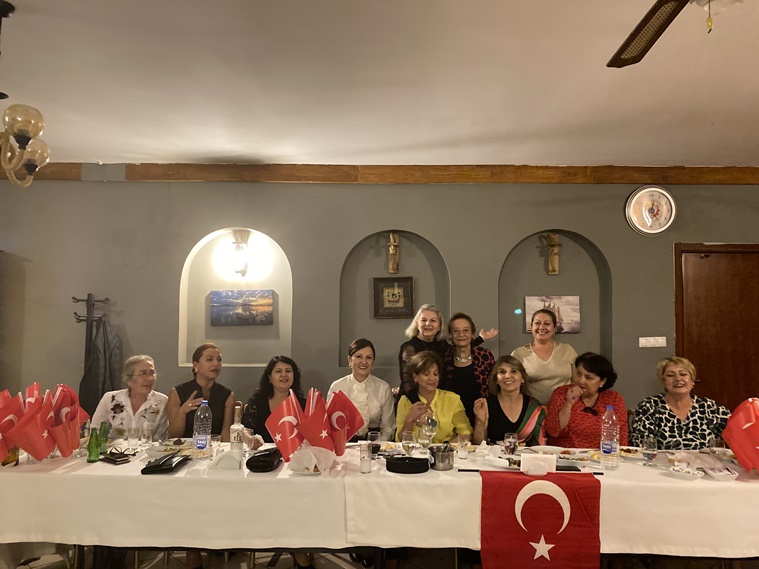 Türk Bayrakları ile süslenmiş nezih gecede ayrıca Cumhuriyetin 100. yıldönümü anısına pasta kesildi, müzik eşliğinde eğlenildi.
