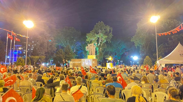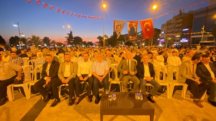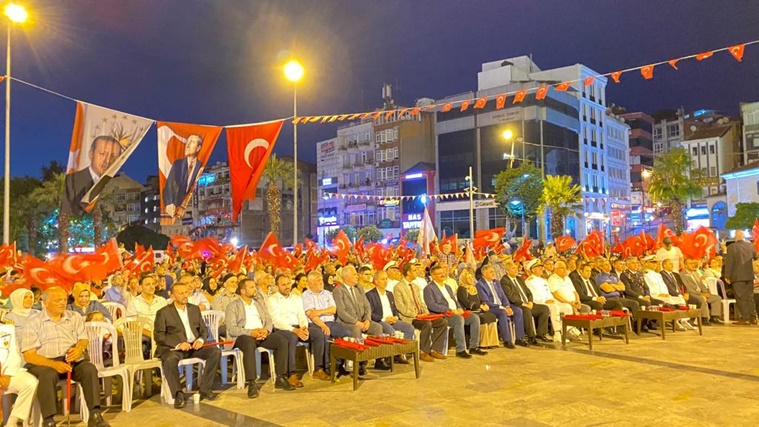 Kaymakamlık tarafından hazırlanan Program, video gösterimleri, şiirlerin okunması, Cumhurbaşkanı Recep Tayyip Erdoğan’ın ulusa sesleniş konuşmasının yayınlanması Kuranı Kerim tilaveti ve tasavvuf Müziği ile devam etti.