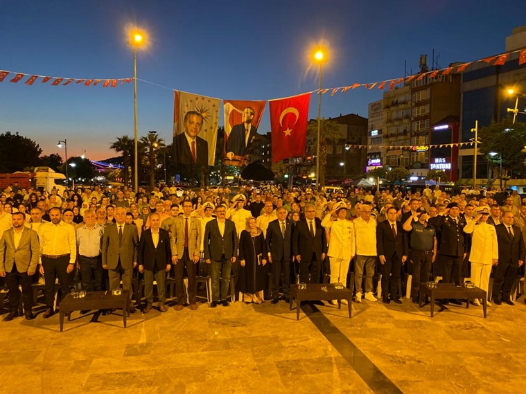 Kaymakam Yapıcı ise, konuşmasının son bölümünde “15 Temmuz bize şu gerçeği gösterdi: Bu millet asil, cesur ve kahraman Bu millet vatanı söz konusu olduğunda aynı safta buluşma gösteren kahraman bir millettir. Türkiye’de demokrasinin de, bağımsızlığın da en büyük garantisi, ferdi olmaktan her zaman şeref duyduğumuz işte bu büyük millettir. Bu düşüncelerle başta Cumhuriyetimin kurucusu Gazi Mustafa Kemal Atatürk olmak üzere, 15 Temmuz gecesi devletimizin bekası için canlarını feda eden şehadet şerbeti içen aziz şehitlerimizi rahmetle, gazilerimiz minnetle anıyor, saygılarımı sunuyorum” diye konuştu.