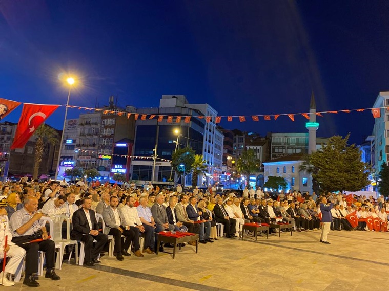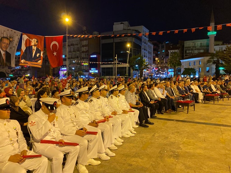 İlçe Merkezindeki Atatürk Anıtı önünde saat 20.00’deki Fotoğraf Sergisi ve 21.00’de gerçekleştirilen Anma Programına; Kdz. Ereğli Kaymakamı Mehmet Yapıcı, Zonguldak Milletvekili Saffet Bozkurt, Karadeniz Bölge ve Garnizon Komutanı Tuğamiral Niyazi Uğur, Kdz. Ereğli Belediye Başkanı Halil Posbıyık, Cumhuriyet Başsavcısı V. Serhat Akın Bekiroğlu, Önceki Dönem Zonguldak Milletvekillerinden Faruk Çaturoğlu, İçe Jandarma Komutanı Üsteğmen Ali Akça, İlçe Emniyet Müdürü Hasan Ünlü, Daire Müdürleri, Ak Parti İlçe Başkanı İbrahim Sezer, MHP İlçe Başkanı Rahman Demirtürk, BBP İlçe Başkanı Yusuf Karaoğlu, MÜSİAD Şube Başkanı Kemal Gülbay, Erdemir’i temsilen Sıcak Haddehaneler Direktörü Kenan Acar, Şehit ve Gazi yakınları ile kalabalık bir halk topluluğu katıldı.