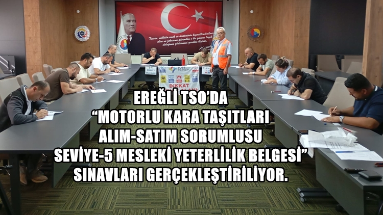 Kdz. Ereğli Ticaret ve Sanayi Odası’nda, Motorlu Kara Taşıtları Alım-Satım Sorumlusu Seviye-5 sınavları gerçekleştirildiği açıklandı.