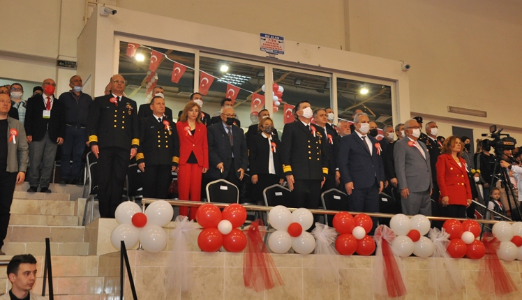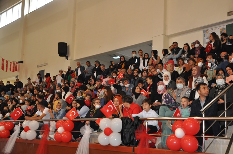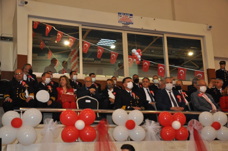 Törenler, Kutlama Programı ile İlçe Gençlik Hizmetleri ve Spor Salonunda devam etti. Buradaki törene Kdz. Ereğli Kaymakamı Mehmet Yapıcı, Karadeniz Bölge ve Garnizon Komutanı Tuğamiral Niyazi Uğur, Belediye Başkanı Halil Posbıyık, Askeri ve sivil Erken ile daire yöneticileri katıldı. Gösterileri hazırlayan okulun kurucuları Eğitim Hayırseverleri Nurdan ve Ahmet Orhan Oğuz çifti de protokol locasından gösterileri izledi.