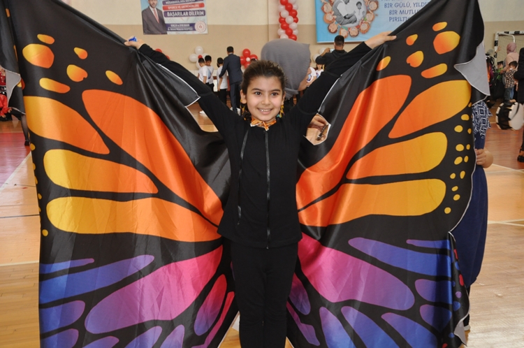 Program, Renkli Çocuklar Potpori Dans ve ve Adam Olacak Çocuklar Ritim gösterisi ile devam etti. Programa günlerce hazırlıktan sonra çıkan çocuklar, bu bölümde Barış Manço’nun şarkıları eşliğinde gösteri yaptılar. Beğeni ile izlenen programda, ilçede düzenlenen yarışmalarda birinci olan 2 öğrenci şiir ve kompozisyon okudu. Devamında ise Anadolu Ateşi Halk Dansları gösterisi, farklı yörelerin oyunlarını sergiledi. ‘Aç kanatlarını Çocuk’ adlı müzikli gösterinin sunumun ardından ‘Kelebek Final Gösterisinde’ Atatürk ve Türk Bayrakları ile süslü pano ile selamlama yapılırken salon ayakta alkışladı.