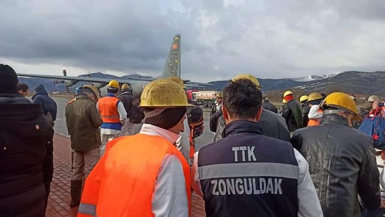 İsimlerini gönüllü olarak yazdıran maden işçileri için Türk Silahlı Kuvvetleri Çaycuma Havalimanı’na bir askeri uçak gönderdi. AFAD koordinesinde maden işçilerimizin deprem bölgelerine sevki devam ediyor. Kısa süre içinde 500 maden işçimizin de deprem bölgelerinde olması bekleniyor.