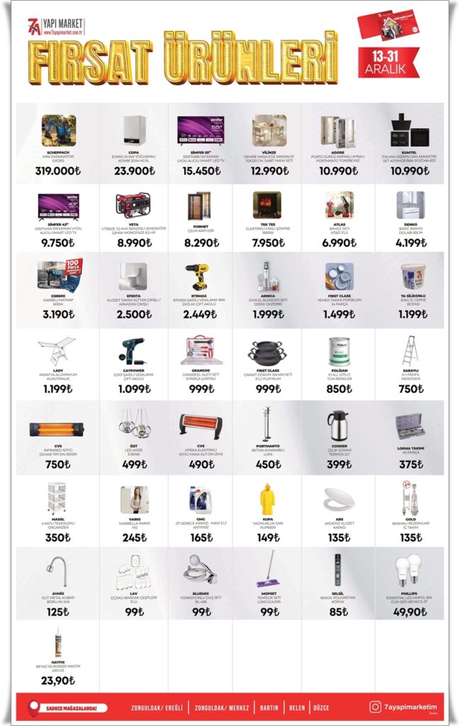 7A YAPI MARKET FIRSAT ÜRÜNLERİ : SON GÜN 31 ARALIK