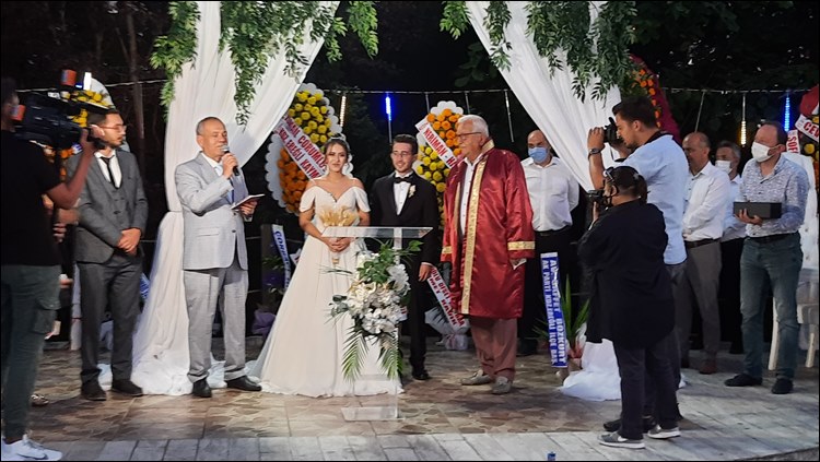 Doğa Park’ta gerçekleşen düğün merasiminde çiftin nikahını Kdz. Ereğli Belediye Başkanı Halil Posbıyık kıyarken, Türkiye Gazeteciler Federasyonu Genel Başkanı Yılmaz Karaca da nikah şahitliği yaptı. Nikahta gençlere nasihatlerde bulunan Başkan Posbıyık, mutluluklar diledi.