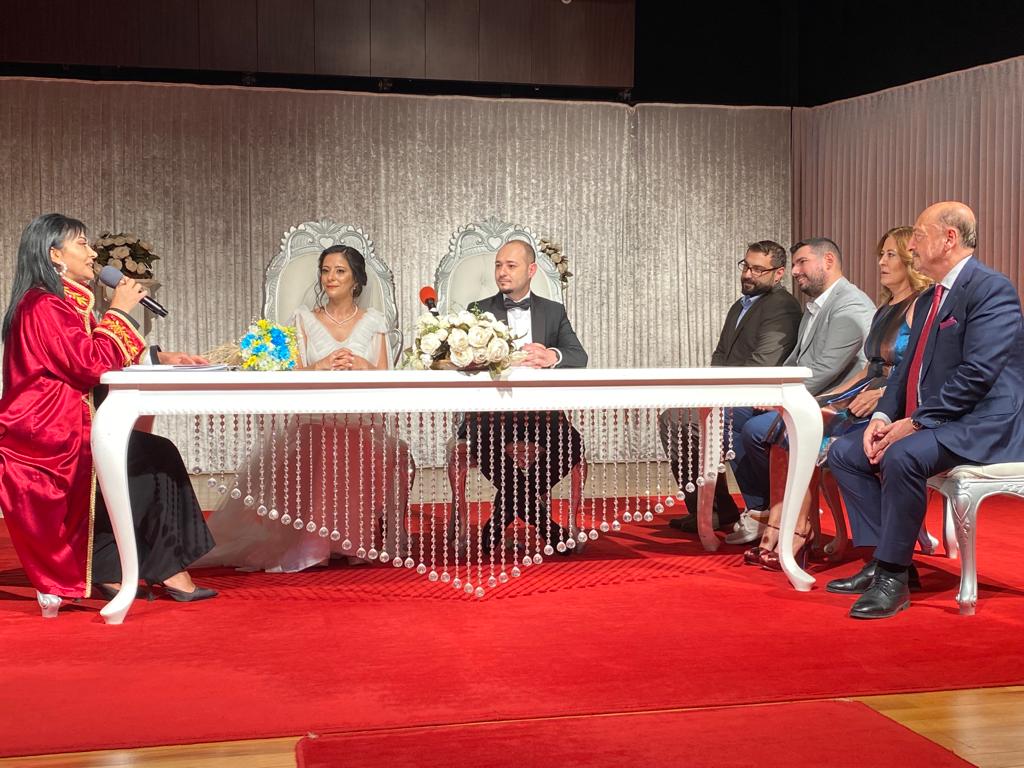 Genç çiftin nikahları 1 Ekim 2022 Cumartesi günü Ankara’da bulunan Türk Japon Vakfı salonunda ailelerin ve davetlilerin huzurunda kıyıldı. Davetliler arasında bulunan Çalışma ve Sosyal Güvenlik Bakanı Vedat Bilgin’ de şahitler arasında yer alarak gençlere mutluluk dileyerek nikah belgesini ‘erkeklerin kaybedebileceği esprisi ile’ gelin hanıma alkışlar eşliğinde teslim etti.