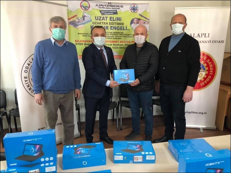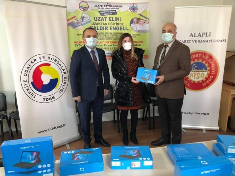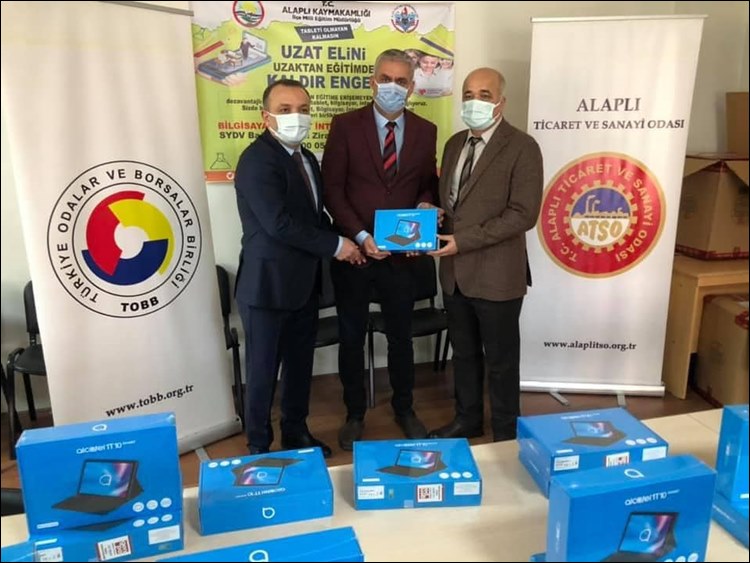 Zonguldak’ın Alaplı İlçesi Ticaret ve Sanayi Odası Yönetimi ve Türkiye Odalar ve Borsalar Birliği (TOBB) işbirliği İle temin edilen tablet bilgisayarlar, ihtiyacı olan öğrencilere ulaştırılmak üzere Alaplı ilçe Milli Eğitim Müdürlüğü’ne törenle teslim edildi.