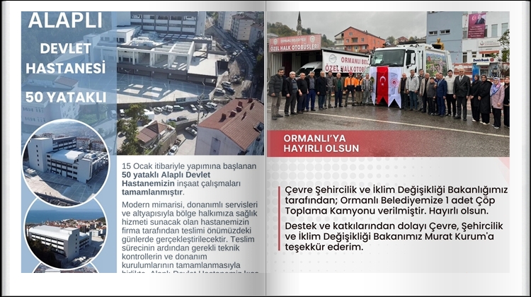 Bozkurt, yakından takip ettiği hükümet yatırımları arasında olan Alaplı ilçesi 50 yataklı Hastane ile ayrıca Ormanlı Beldesi’ne ilgili bakanlık tarafından bağış yapılan çöp kamyonu hakkında bilgi paylaşımında bulundu.