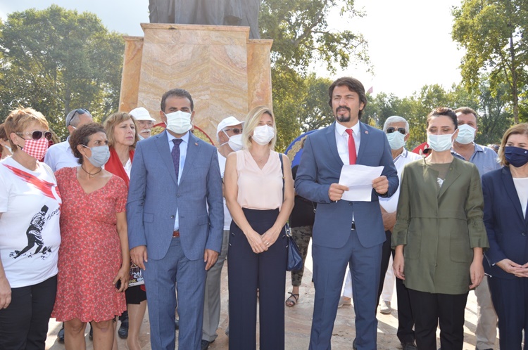 Tören, protokol üyelerinin çelenk sunumu ile başladı. Saygı duruşunda bulunulması, İstiklal Marşının okunması ve bayrakların göndere çekilmesinin ardından Cumhurbaşkanı Recep Tayyip Erdoğan’ın mesajı okundu. Günün anlam ve önemini belirten konuşmayı ise Deniz İstihkam Üsteğmen Emre Altınöz yaptı. Şiir okunmasını, Tenis Turnuvasında derece alanlara protokol üyeleri tarafından ödül takdim edilmesi ve Müdafaa-i Hukuk Cemiyeti üyelerinden 12 kahramanın büstlerine karanfil bırakılması takip etti. Öte yandan; CHP İlçe Başkanlığı, İYİ Parti İlçe Başkanlığı, Atatürkçü Düşünce Derneği Şube Başkanlığı ile birlikte bazı dernek ve üyelerinin katıldığı alternatif törende, parti ve dernek çelenkleri Atatürk Anıtı’na konuldu, konuşmalar yapıldı.