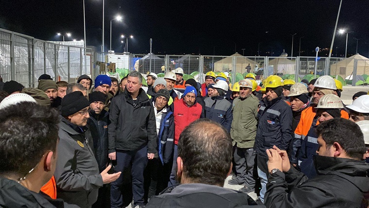 Enerji ve Tabii Kaynaklar Bakanı Fatih Dönmez, deprem bölgesinde yüzlerce yaralı kurtaran Türkiye Taşkömürü Kurumu’nda (TTK) çalışan maden işçilerinin Hatay’da görev yapan grubunu ziyaret etti. Maden işçilerini deprem bölgesinde biran olsun yalnız bırakmayan GMİS Genel Başkanı Hakan Yeşil ile görüşen Bakan Dönmez, verdikleri destek nedeniyle teşekkür etti.