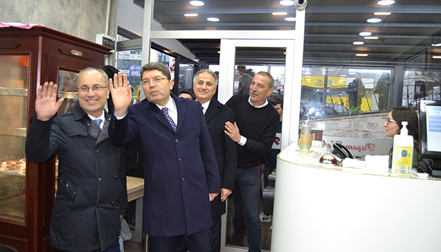 Bakan Tunç, Öğretmenevi’ndeki toplantının ardından ilçe merkezinde esnaf ziyaretleri yaparak işlerinde kolaylıklar ve bereketli kazançlar diledi. Esnafla ve alışveriş yapan vatandaşlarla sohbet eden Tunç, 31 Mart seçimlerinde AK Parti Kdz. Ereğli Belediye Başkan adayı İbrahim Sezer’e destek istedi.