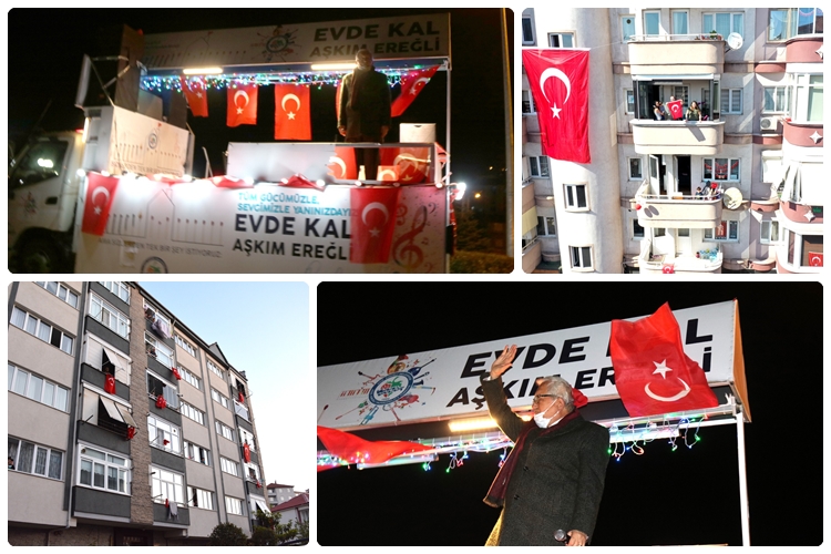 23 Nisan Ulusal Egemenlik ve Çocuk Bayramı, tüm yurtta olduğu gibi Ereğli’de de koronavirüs tedbirleri nedeniyle evlerde kutlandı. Belediye Basın Danışmanlığından verilen bilgiye göre; Kdz. Ereğli Belediye Başkanı Halil Posbıyık gün içinde, müzik aracıyla birlikte mahalleleri, sokak sokak dolaştı ve Ereğlililerin bayramını kutladı. Posbıyık saat 21.00’de yine sokaklardaydı; İstiklal Marşını halkla birlikte söyledi.