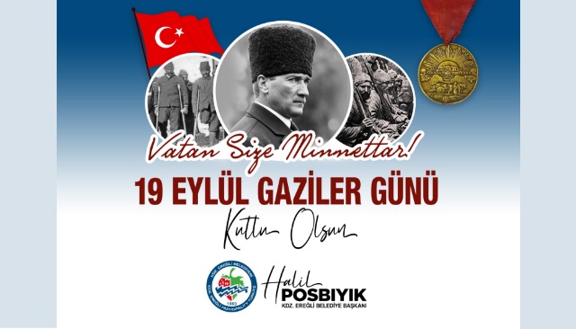 Kdz. Ereğli Belediye Başkanı Halil Posbıyık, Gaziler Günü nedeniyle kutlama mesajı yayımladı.