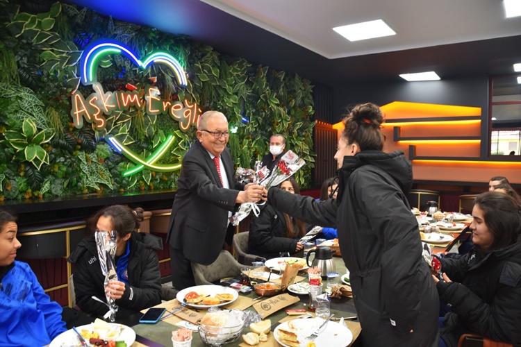 Kdz. Ereğli Belediye Başkanı Halil Posbıyık, 8 Mart Dünya Emekçi Kadınlar Günü’nde belediyede çalışan kadın personel ve Belediyespor Kadın Futbol Takımı oyuncuları ile kahvaltıda bir araya geldi. Rusya ve Ukrayna arasında devam eden savaş nedeniyle sevgi, barış, dostluk çağrısı yapan Başkan Posbıyık, önemli mesajlar verdi.