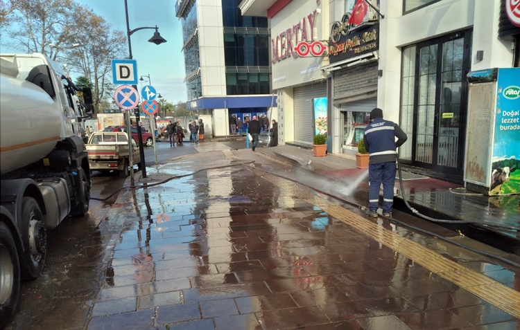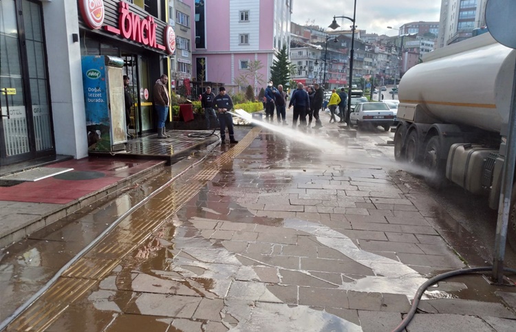 Cadde ve sokaklar yıkanıyor, molozlar kaldırılıyor, yıkılan ağaçlar kesiliyor, çöken yerler onarılıyor.
