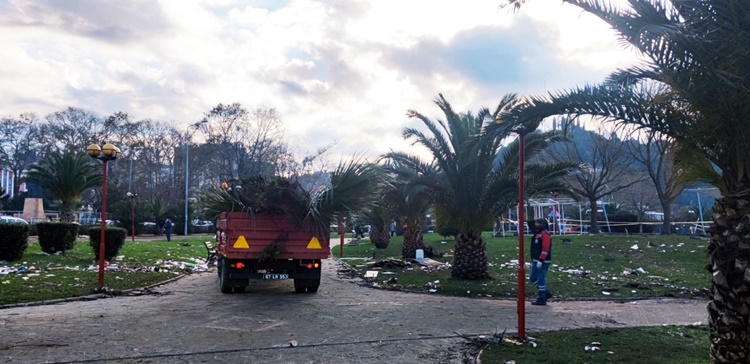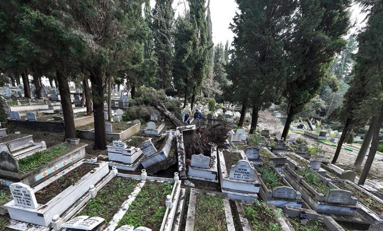 Ekipler, yıkılan ağaçları kaldırma çalışmalarına başlarken Mezarlıklar Müdürlüğü ve Afet Yönetmeliği’ne göre gerekli tespitleri yapıyor.  Ağaçlardaki tehlike nedeniyle mezarlıklara giriş ve çıkışlar kontrollü olarak sağlanıyor.