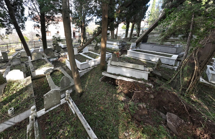 Şehir Mezarlığı ve Kestaneci Mezarlığı’nda ilk belirlemelere göre 200’e yakın ağaç devrildi, 300 mezar hasar gördü. Belediye, AFAD işbirliğiyle mezarlıkların eski haline gelmesi için tüm çalışmalar yapılacak.