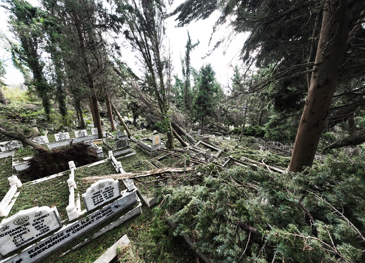 Şiddetli fırtına, Şehir Mezarlığı ve Kestaneci Mezarlığı’nda ilk belirlemelere göre 200’e yakın ağacı devirdi, bazı ağaçlar da mezarların üzerine devrilerek yaklaşık 300 mezarda hasar oluşturdu.