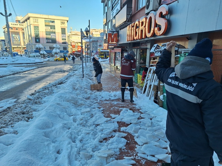 Belediye Basın Bürosundan verilen bilgiye göre; Fen İşleri Müdürlüğü, Su ve Kanalizasyon, İtfaiye, Temizlik İşleri ve Zabıta başta olmak üzere bütün birimler, karla mücadele seferberliğini sürdürüyor. Ana arterlerden sonra ara yollarda kar küreme ve tuzlama çalışmaları devam ediyor, kaldırımlar ve yaya geçitleri yayalar için güvenli hale getiriliyor. İtfaiye tehlike arz eden kar ve buz sarkıtlarını temizliyor, çarşı merkezi kar kütlesinden arındırılıyor.