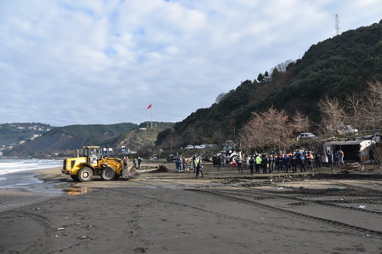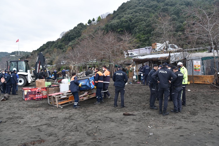 Karadeniz Ereğli Plajlar Bölgesi sahilinde izinsiz yapılan ve ticari amaçla kullanılan baraka-çadır türünde yapılar belediye ekiplerince yıkıldı.