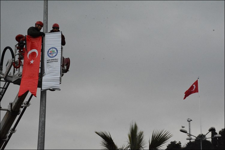 Kdz. Ereğli Belediyesi Kültür ve Sosyal İşler Müdürlüğü kent içindeki aydınlatma direklerini Türk bayrakları ve belediye flamasıyla donattı.