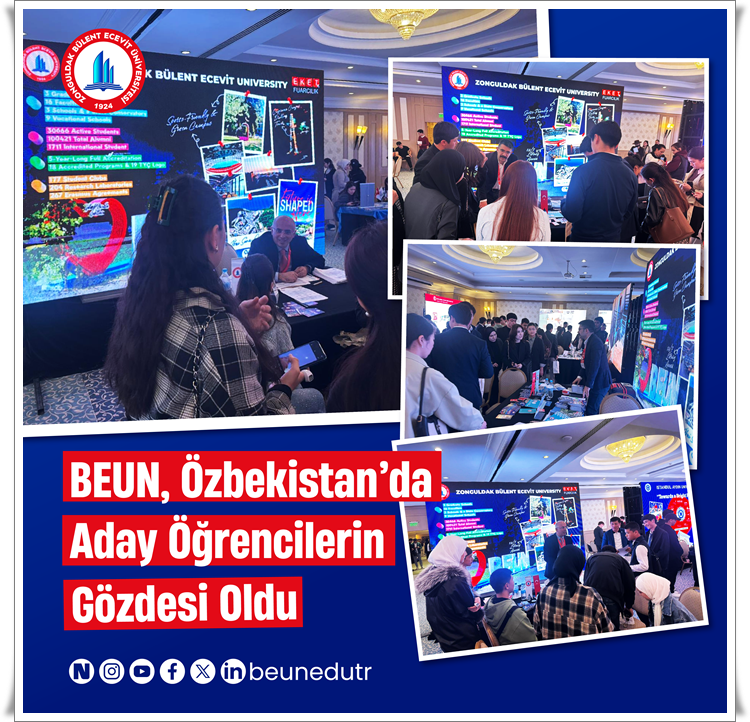 Zonguldak Bülent Ecevit Üniversitesi (BEUN), uluslararasılaşma vizyonu kapsamında Özbekistan’da düzenlenen “Türk Üniversiteleri Tanıtım Fuarı”nda yer alarak büyük ilgi gördü. Türkiye’de eğitim almak isteyen Özbek öğrenci adaylarının yoğun katılım sağladığı BEUN standı, gün boyunca aday öğrencilerin ilgi odağı oldu ve üniversitenin akademik imkânları ile kariyer olanakları büyük beğeni topladı.