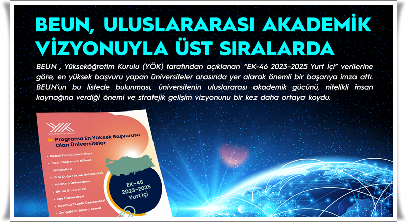 Yükseköğretim Kurulu tarafından uygulanan EK-46 maddesinin “EK-46 2023–2025 Yurt İçi” verilerine göre; Orta Doğu Teknik Üniversitesi, İstanbul Teknik Üniversitesi, Marmara Üniversitesi, Ege Üniversitesi, Dokuz Eylül Üniversitesi ve İhsan Doğramacı Bilkent Üniversitesi gibi Türkiye’nin köklü yükseköğretim kurumlarının yer aldığı listede BEUN’un da bulunması; üniversitenin bilimsel üretim gücü, araştırma odaklı yaklaşımı ve küresel akademik dinamizmi açısından dikkat çekici bir gösterge oldu.
