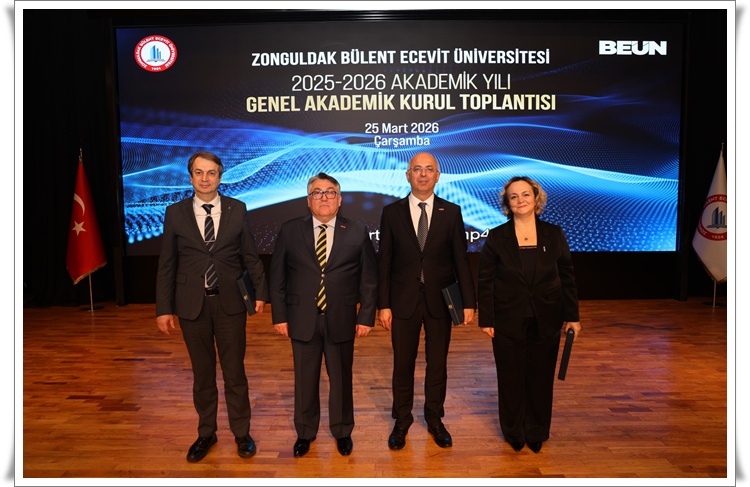 Zonguldak Bülent Ecevit Üniversitesi (BEUN), “2025-2026 Akademik Yılı Genel Akademik Kurul Toplantısı” Rektör Prof. Dr. İsmail Hakkı Özölçer başkanlığında gerçekleşti. BEUN’un 2022-2026 yılları arasındaki akademik, bilimsel ve kurumsal gelişiminin kapsamlı şekilde ele alındığı toplantı, aynı zamanda başarıların paylaşıldığı ve gelecek vizyonunun ortaya konulduğu önemli bir platform olarak değerlendirildi.