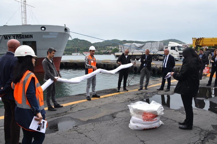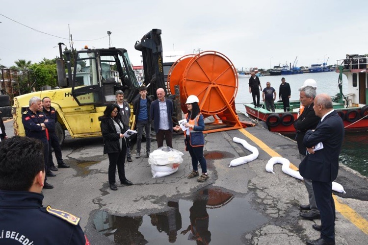Deniz Kirliliğine Acil Müdahale Tatbikatı gereği, liman içinde oluşan deniz kirliliğine müdahale edildi. Eğitim ve Tatbikat Koordinatörü Çevre Yüksek Mühendisi Mehtap Akbaş tarafından personele kullanılacak malzemeler tanıtıldı, teknik bilgiler aktarıldı.