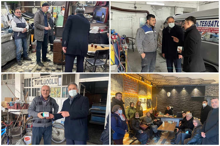 AK Parti Kdz. Ereğli İlçe Başkanı Saffet Bozkurt; Ana Kademe Yönetim Kurulu Üyeleri, Kadın Kolları Başkanı Fadime Doğru, Kadın Kolları Yönetim Kurulu Üyeleri, Gençlik Kolları Başkanı Tunay Berber ve Gençlik Kolları Yönetim Kurulu Üyeleri ile birlikte, Berat Kandili münasebetiyle Kışla Mahallesi Sanayi Sitesindeki esnafları ziyaret ederek, kandil simidi ikram edip kandillerini kutladı.