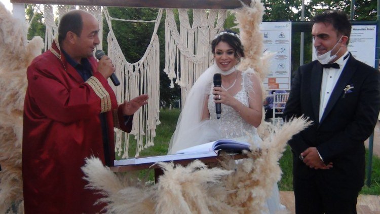 Ceyda-Abdullah çifti, kararlar gereği İçişleri Bakanlığı genelgesinin okunması ardından müzik eşliğinde girdikleri alanda davetlilerin yoğun alkışı ile karşılandı. Gülüç Belediye Başkanı Gökhan Demirtaş’ın kıydığı nikah sonrasında Evlilik Cüzdanı alkışlar arasında gelin hanıma verildi.