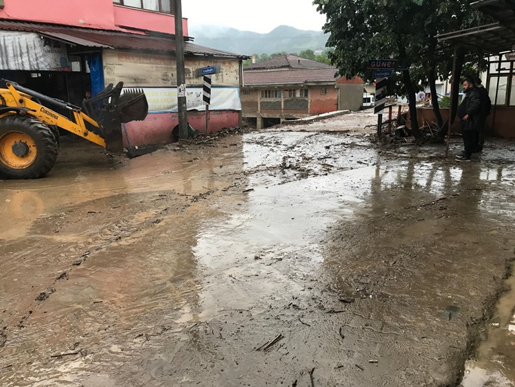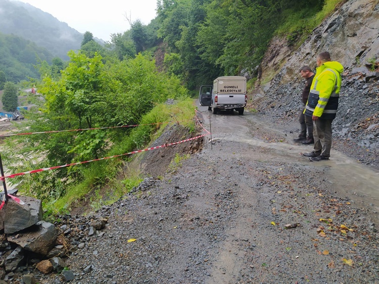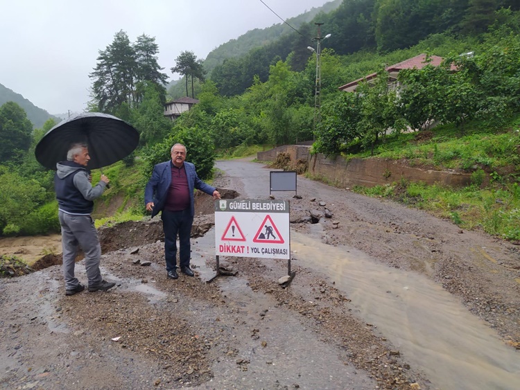 Öte yandan Alaplı’ya bağlı Gümeli Beldesi’nde de sel nedeni ile heyelan meydana geldi, yol kapandı. Belediye Başkanı Ahmet Saydam yönetimindeki Belediye ekipleri yolda çalışma yaparken görüntülendi.