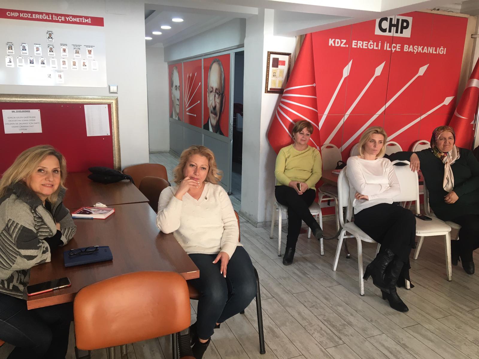 Öte yandan 7 Mart’ta gerçekleştirilecek İl Örgütü Kadın Kolu Genel Kurulu’nda mevcut Kadın Kolu İl Başkanı Merve Kır ve Kadın Kolları İl Başkan Adayı Mukadder Yalçın da Kdz. Ereğli İlçe Örgütü’nü ziyaret ederek delegelerle bir araya geldiler. Kır ve Yalçın, delegasyona hitaben birer konuşma yaparak İl Kadın Kolu Başkanı oldukları takdirde hayata geçirmeyi düşündükleri çalışmalar ve hedefleriyle ilgili yorumlarda bulundular.
