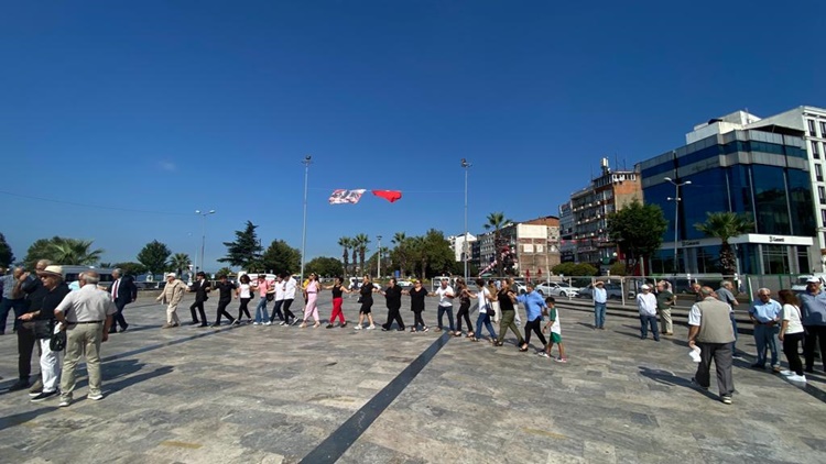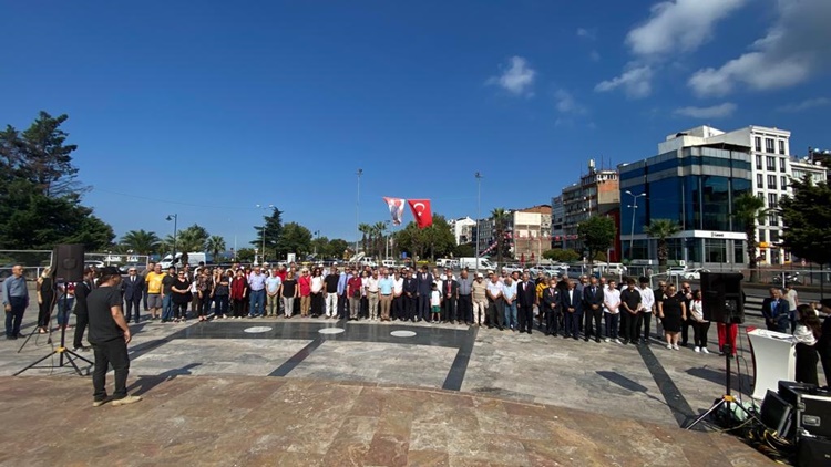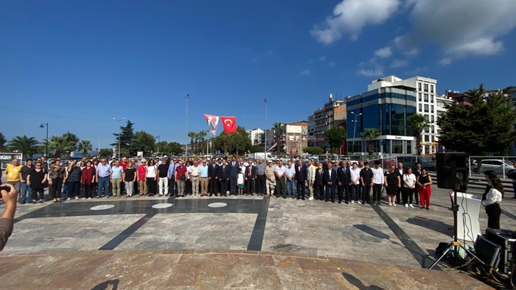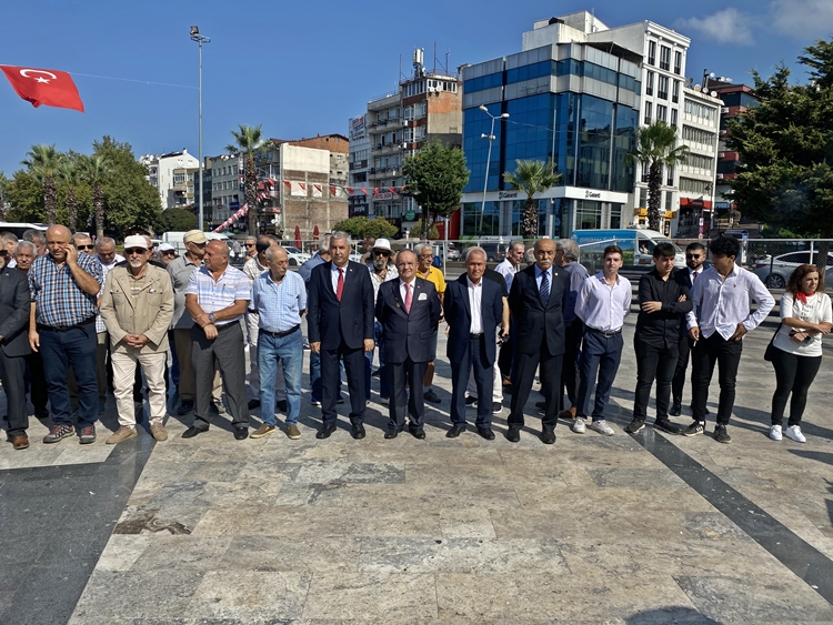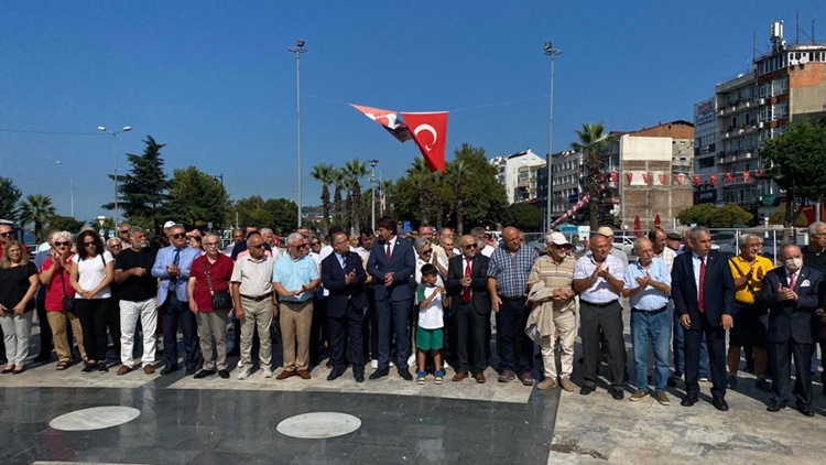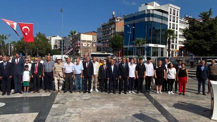 9 Eylül Cumartesi günü Atatürk Anıtı önünde düzenlenen tören, İlçe Başkanı Ali Kocamanoğlu’nun Atatürk Anıtına çelenk sunumu ile başladı. Ardından saygı duruşlunda bulunuldu, istiklal marşı söylendi.