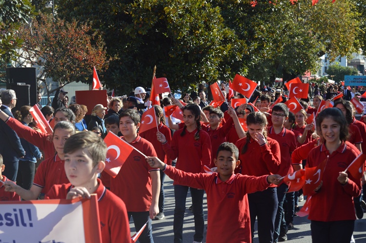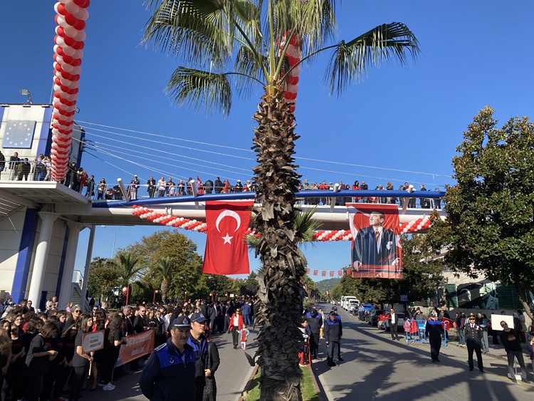 Tören bando eşliğinde okulların ve katılımcı grupların resmi geçidi ile sona erdi.