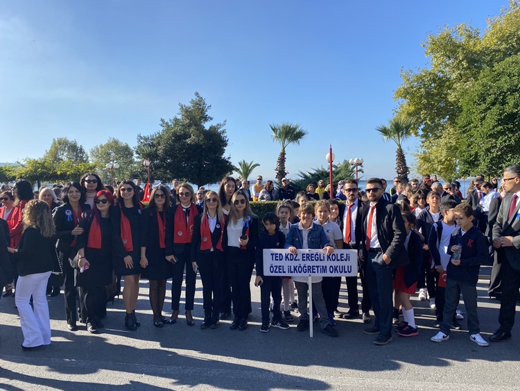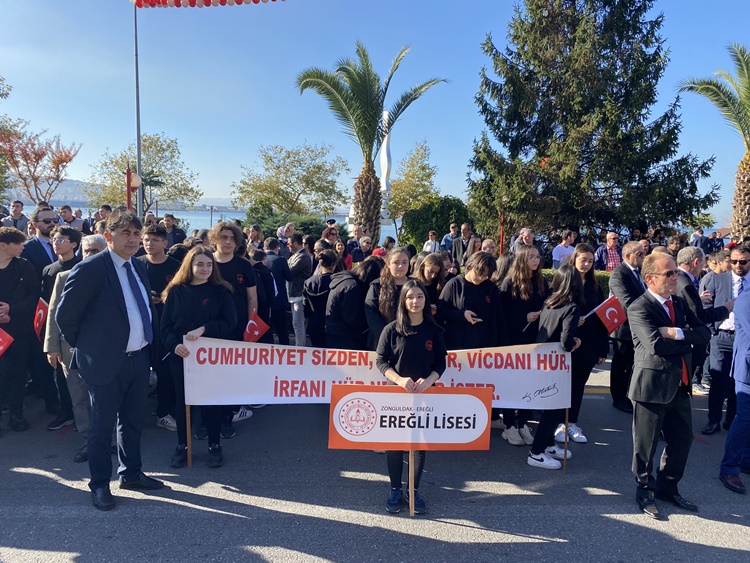 Atatürk Bulvarındaki tören alanında gerçekleştirilen kutlamalara Kdz. Ereğli Kaymakamı Mehmet Yapıcı, Karadeniz Bölge ve Garnizon Komutanı Tuğamiral Niyazi Uğur, Belediye Başkanı Halil Posbıyık, Cumhuriyet Başsavcısı Akın Çetin, Ağır Ceza Başkanı ve Komisyon Başkanı Aynur Çelik, siyasi parti ve stk temsilcileri, askeri ve sivil erkan ile okullar katıldı.