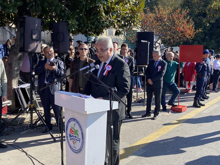 Kaymakam Mehmet Yapıcı ise konuşmasında Cumhuriyetin zor koşullarda Mustafa Kemal Atatürk ve arkadaşları tarafından ilan edildiğini anlattı ve Cumhuriyet yönetiminin önemi ile kazanımlarından söz etti. Mesajının son bölümünde öğrencilere seslenen Kaymakam Yapıcı, özetle “Yurdumuzda barışın özgürlüğün egemenliğin milli ve manevi değerlerimizin güvencesi olan sizler yine Atatürk’ün ‘yaptıklarımızı asla kafi göremeyiz çünkü çok daha büyük işler yapmak zorunda ve azmindeyiz’ sözlerini ilke edinerek eğitim, bilim teknoloji kültür ve sanatta ilerlemeye, cumhuriyetimizin sarsılmaz değerleri ışığında var olan gücünüzle çalışmaya devam edeceksiniz. Sevgili öğrenciler; Türk gencinin varlık sebebi vatanı ve milletidir…. Türk milletinin yeniden var oluş mücadelesini verdiği bu dönemde vatanını, bayrağını, milletini seven her kesin en büyük güvencesi Türk gencidir. Atatürk diyor ki; ‘Türk olduğunuzu sakın unutmayın. Bu vatan toprakları bu küçük ellerin, bu küçük yüreklerin Türklük bilinci ve milli şuur duygusu ile kurtuldu.’ Bu duygu ve düşüncelerle hemşerilerimizin ve bütün vatandaşlarımızın 29 Ekim Cumhuriyet Bayramını kutluyorum.” diye konuştu.