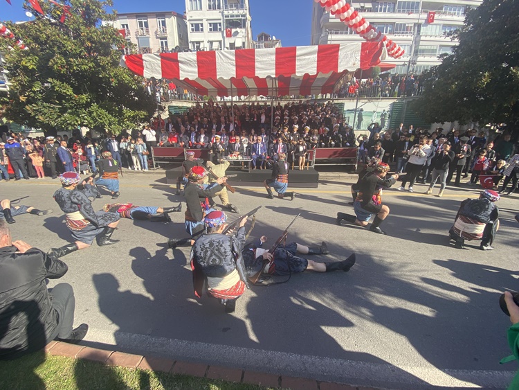 Tören, Kaymakam Yapıcı, Komutan Uğur ve Başkan Posbıyık’ın askeri cip üstünde okullar, halk ve protokolü selamlaması ile başladı. Ardından Saygı duruşunda bulunuldu, istiklal marşı okundu. Cumhurbaşkanı Recep Tayyip Erdoğan’ın mesajı okundu.