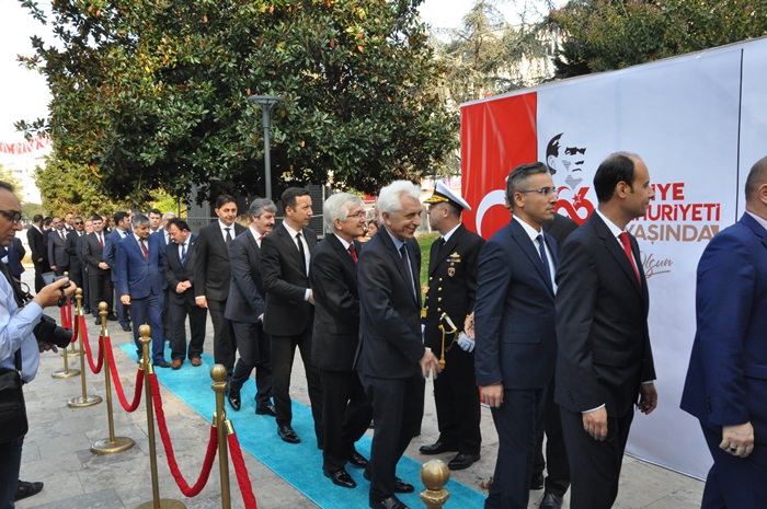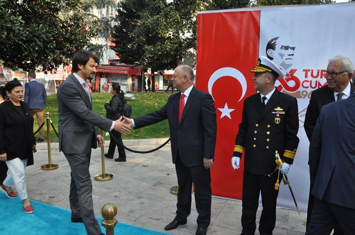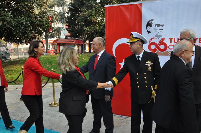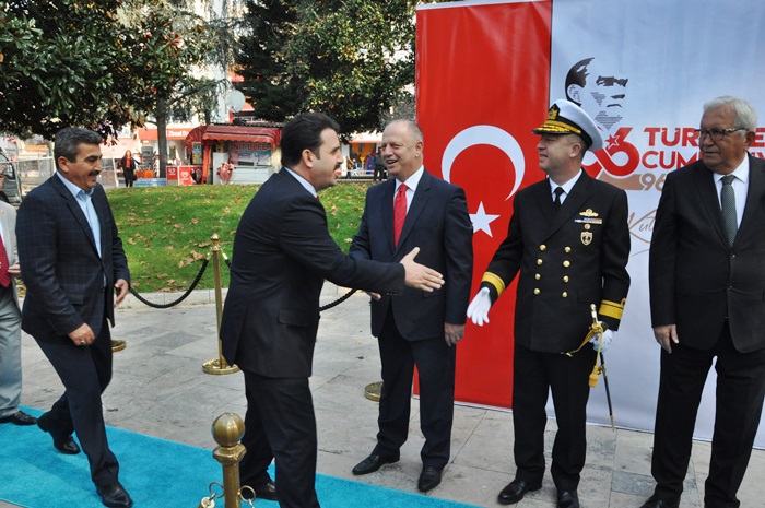 28 Ekim Pazartesi günü düzenlenen çelenk takdim töreninin ardından 29 Ekim Salı günü sabah saat 10.30’da Kdz. Ereğli Kaymakamı İsmail Çorumluoğlu, Karadeniz Bölge Komutanı Tuğamiral Hüseyin Sami Uyar ve Belediye Başkanı Halil Posbıyık Atatürk anıtı arka kısmında bulunan İnönü parkında kurulu platform önünde tebrikleri kabul ettiler. Tören alanında Cumhuriyet Ortaokulu öğrencileri tarafında düzenlenen ve değişik metaryallarden üretilen ’96 Türk Bayrağı Sergisi’ katılımcıların ilgisini çekti.