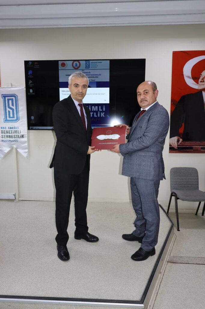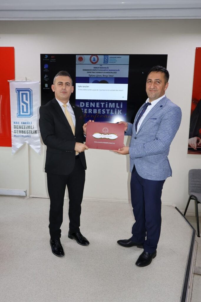 Etkinlik, Kdz. Ereğli Denetimli Serbestlik Müdürlüğünün faaliyetlerini tanıtan video gösterimiyle devam etti. Programın sonunda konuşmacılara teşekkür belgeleri takdim edildi. Konferans, toplu fotoğraf çekiminin ardından sona erdi.