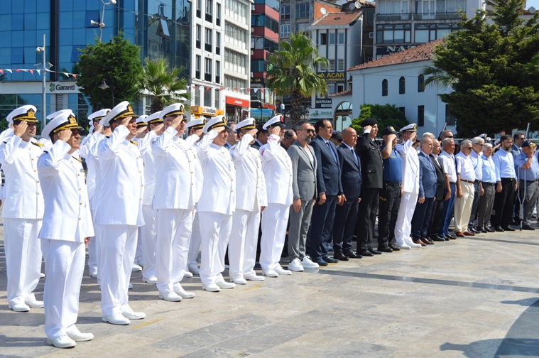 Törenin ardından Belediye Limanı’ndan denize çelenk bırakıldı.