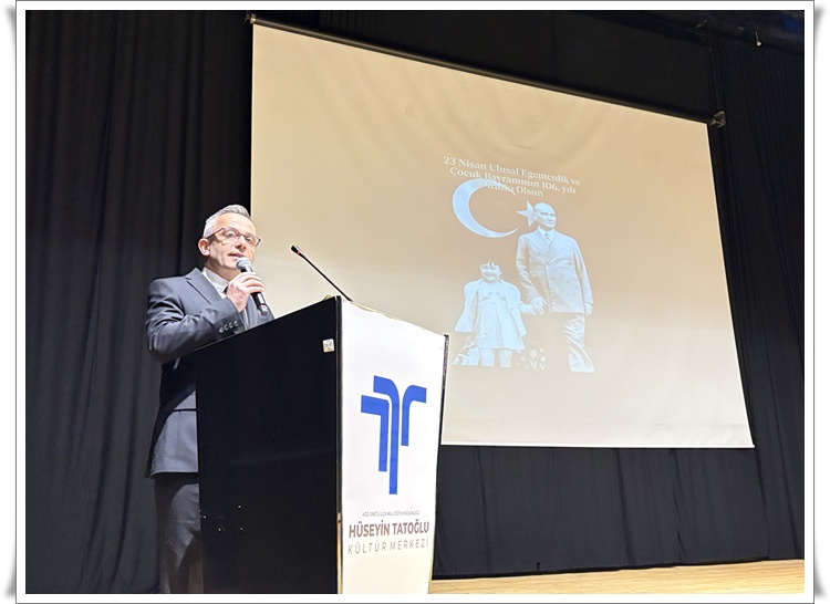 Günün anlam ve önemini belirten konuşmayı yapan Erdemir İlköğretim Okulu Müdürü İlker Kıbrıs, katılımcıları “Millî egemenliğin ilk adımı olan, demokrasi kazanımımızın ilk merdiveni olan bu kutlu güne hoş geldiniz” ifadeleri selamladı. Konuşmasını “Tek önderimiz Atatürk ve elbette bu büyük devrimde payı olan diğer kahramanların, egemenliği gerçek sahibi olan halka vermelerinin 106. yıl dönümünü kutluyoruz.” diyerek sürdüren Kıbrıs, öğrencilere seslenerek, “Sizler bu ülkenin yarını değil, bugünden en kıymetli gücüsünüz. Hayalleriniz Türkiye’nin yolunu, inancınız ise geleceğini aydınlatacaktır.” dedi.