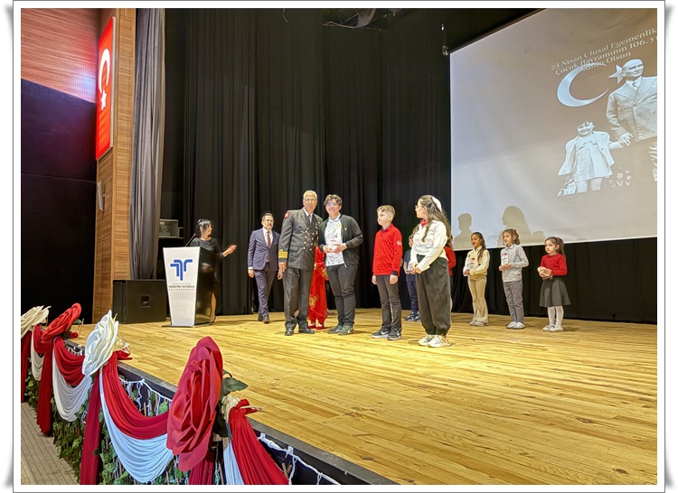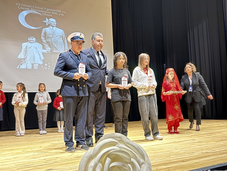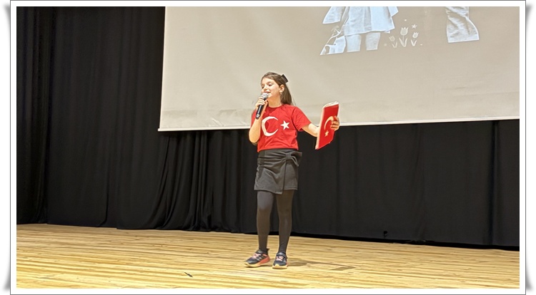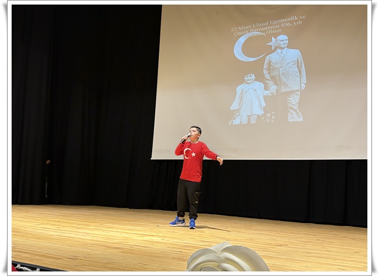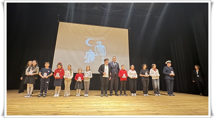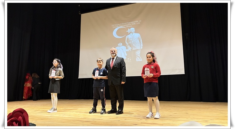 Programın devamında 23 Nisan konulu video sunumu yapıldı ve Çocuk Bayramı” adlı şiir Öğrenci İpek Yontar tarafından okundu. İlçe çapında düzenlenen yarışmalarda dereceye giren öğrencilere protokol üyeleri tarafından ödüllerinin verilmesinin ardından Bayrak konulu şiir Öğrenci Poyraz Helvacı tarafından okundu.
