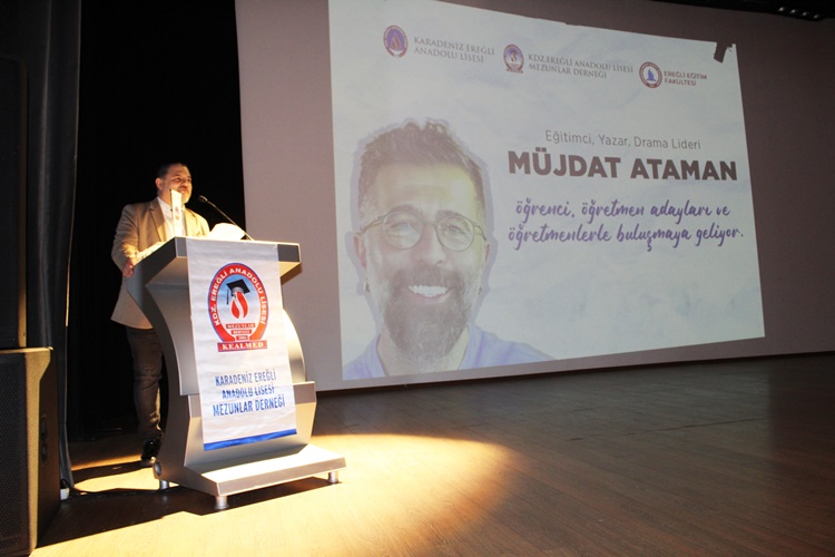 Kdz.Ereğli Mezunlar Derneği tarafından 24 Kasım Öğretmenler Gününe özel olarak BEÜ Eğitim Fakültesi ve Kdz.Ereğli Anadolu Lisesi işbirliği ile 21 Kasım 2024 Perşembe günü Erdemir Kültür Merkezi’nde gerçekleştirilen seminer programında Eğitimci Yazar Drama Lideri Müjdat Ataman, 3 ayrı seansta gerçekleştirdiği sunumlarda, 75 eğitim kurumundan 1000 katılımcı ile bir araya geldi.