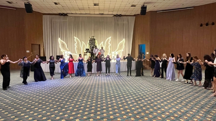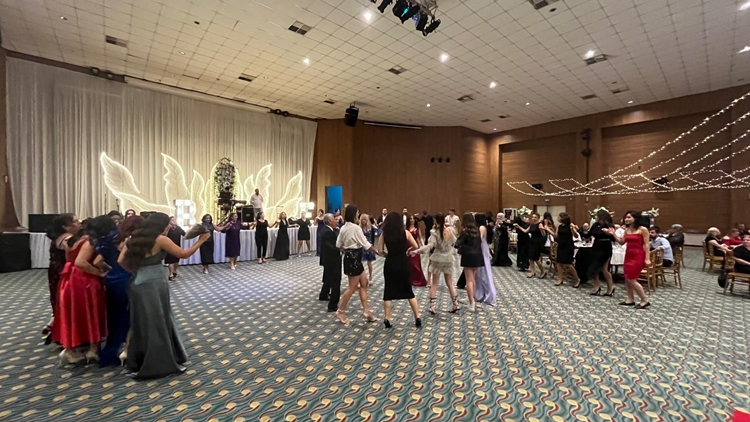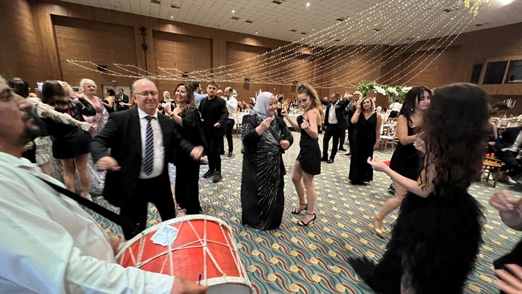 Müzik eşliğinde piste çıkarak ilk dansı yapan genç çifte aileler ve davetliler de eşlik etti. İkramlar eşliğinde devam eden düğün; takı töreni, hareketli oyunlar ve halaylarla devam etti.