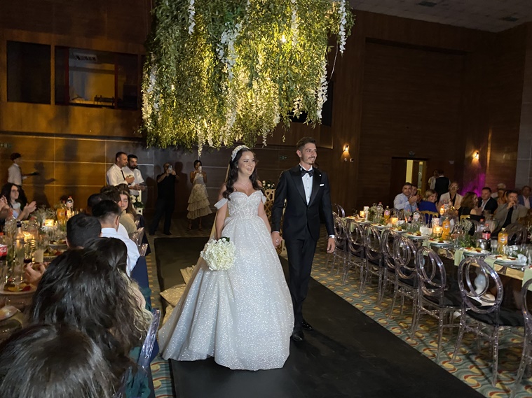 Davetlilerin uzun kuyruk oluşturduğu takı töreni ile devam eden düğün töreni, pasta kesimi ve tebriklerin kabulü ile sürdü.