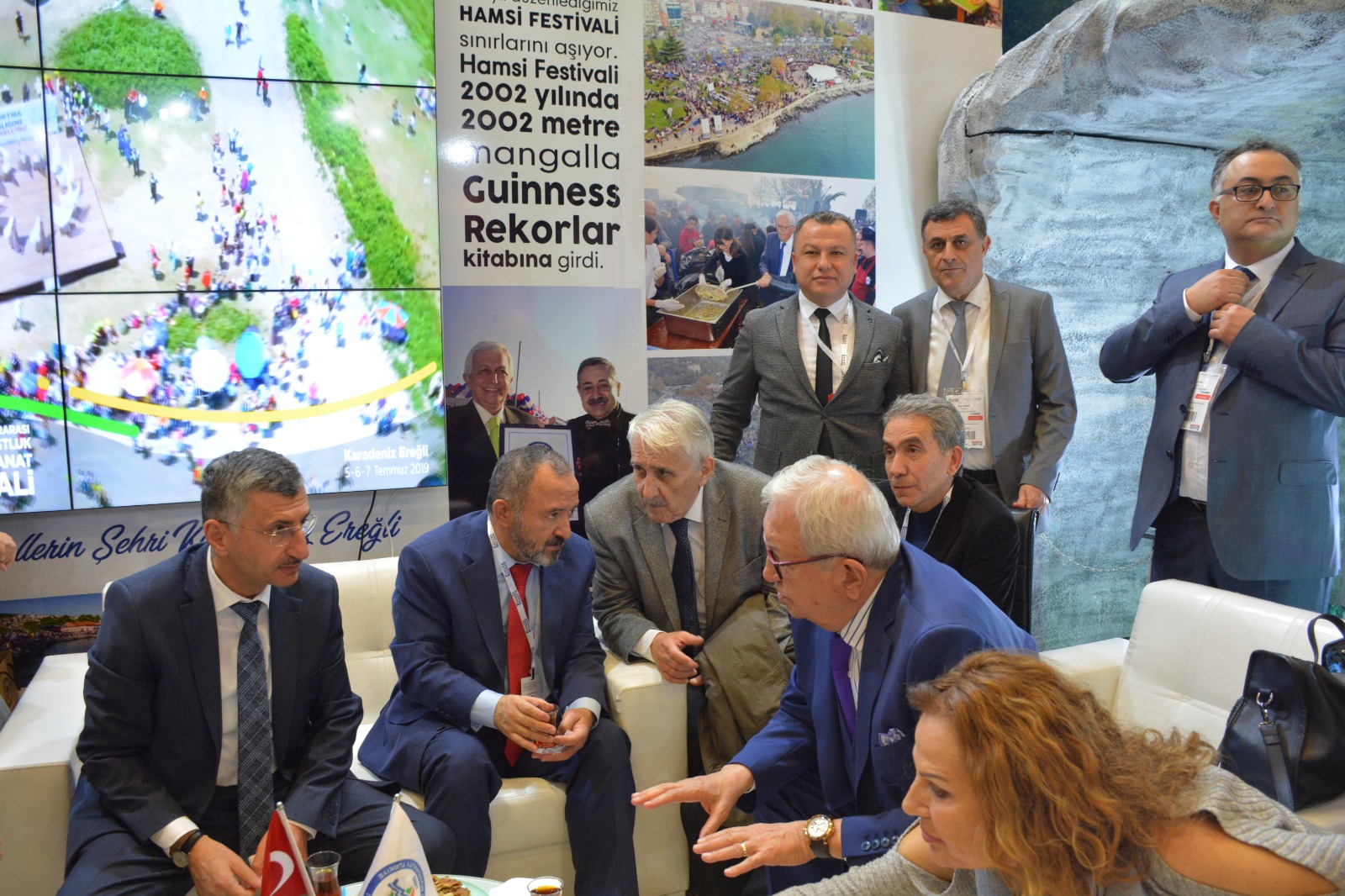 Zonguldak Valisi Erdoğan Bektaş, EMITT Fuarında Kdz. Ereğli standını ziyaret ederek “Ereğli Belediyesi buraları hiç ihmal etmiyor; bu sene de hakkını vermiş, Başta başkanım olmak üzere bütün ekibi kutluyorum. Ellerine sağlık, güzel bir stand hazırlamışlar ve temsil etmeye çalışıyorlar. EMITT’in Zonguldak olarak hakkını verme zamanı geldi diyorum. Bundan sonra daha güzel çalışmalar yapacağımıza inanıyorum” dedi.